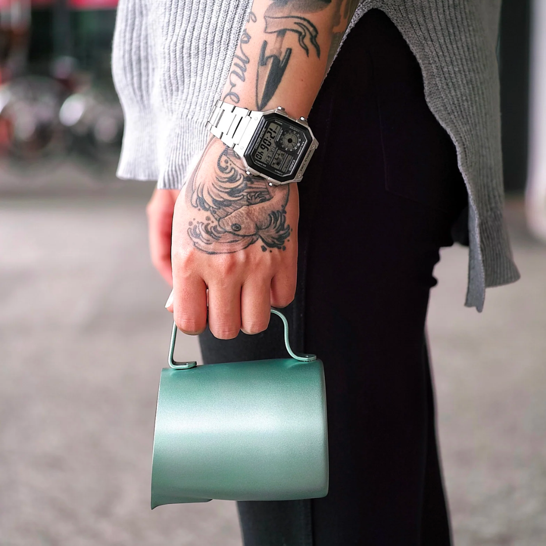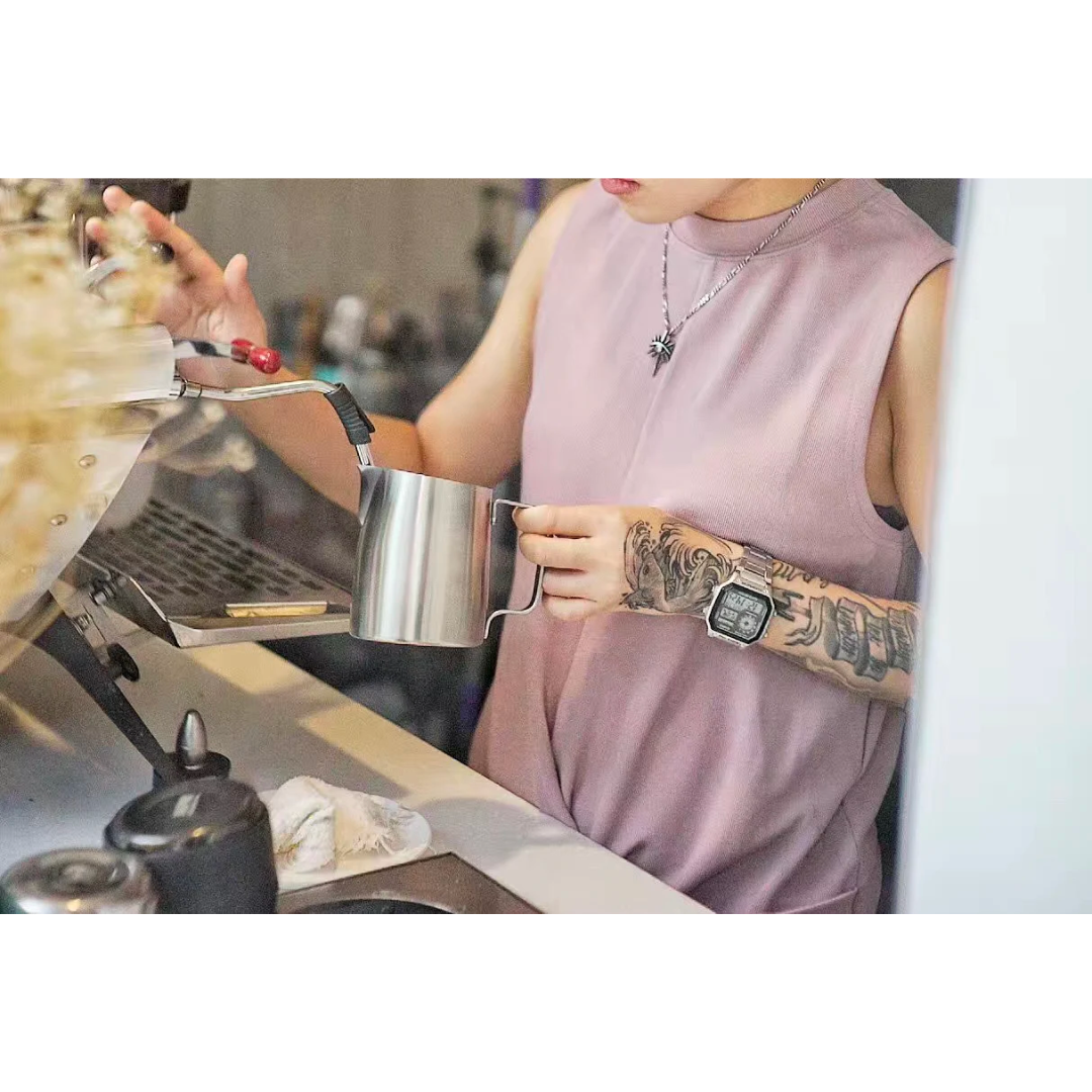 In collaboration with IVY LKY, the 2016 NY Coffee Fest Latte Art Champion, we proudly present our special edition milk pitcher, with the concept of "Never Stand Still". Its lightweight design allows for easier flow control, while the extra sharp spout enables baristas to create delicate fine lines in combination patterns, like her signature design "hippo".