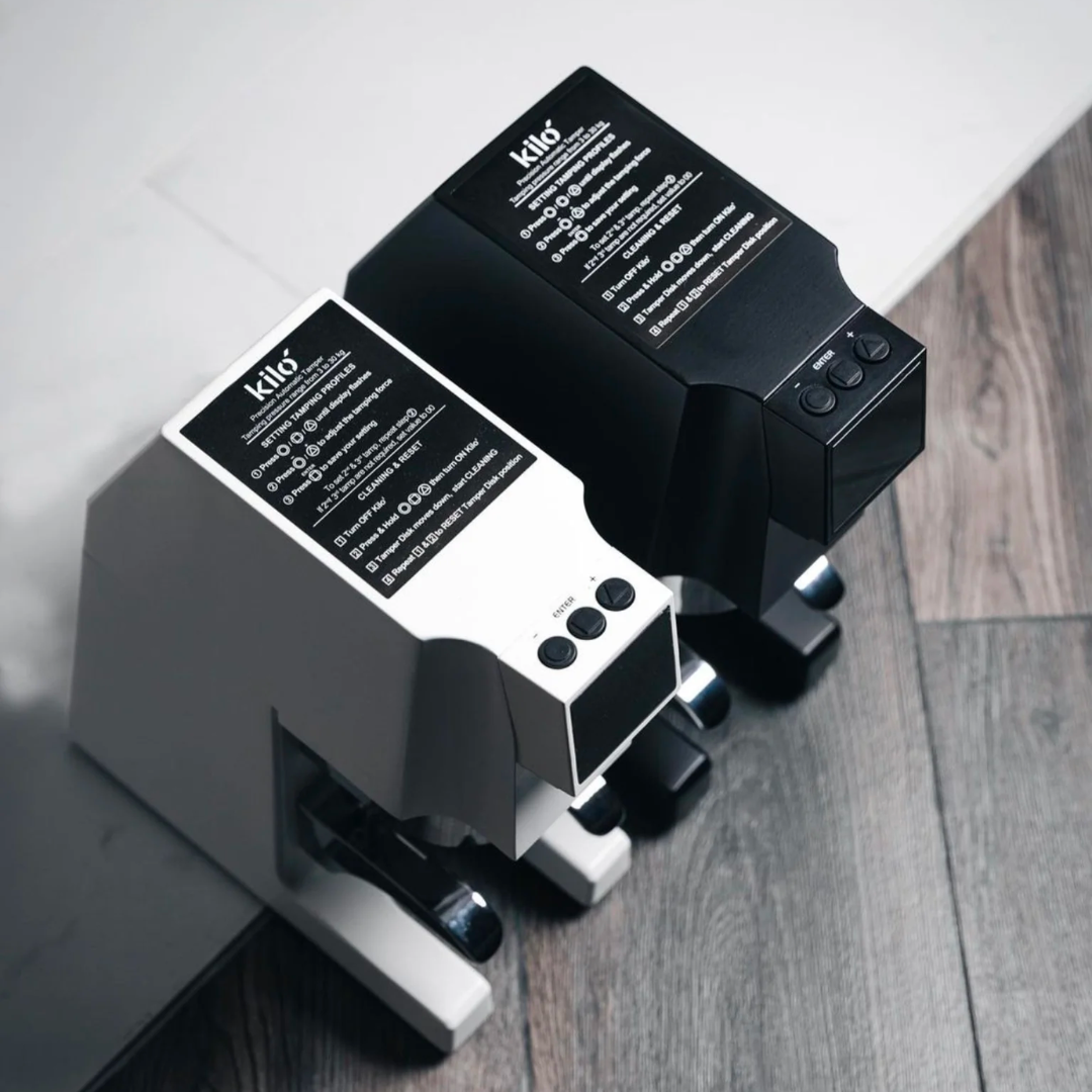 Kilo' tamps the coffee puck while gently polishing the coffee surface with a 35 degree turning motion. Our unique tamping movement eliminates statics in the Tamping Disc.