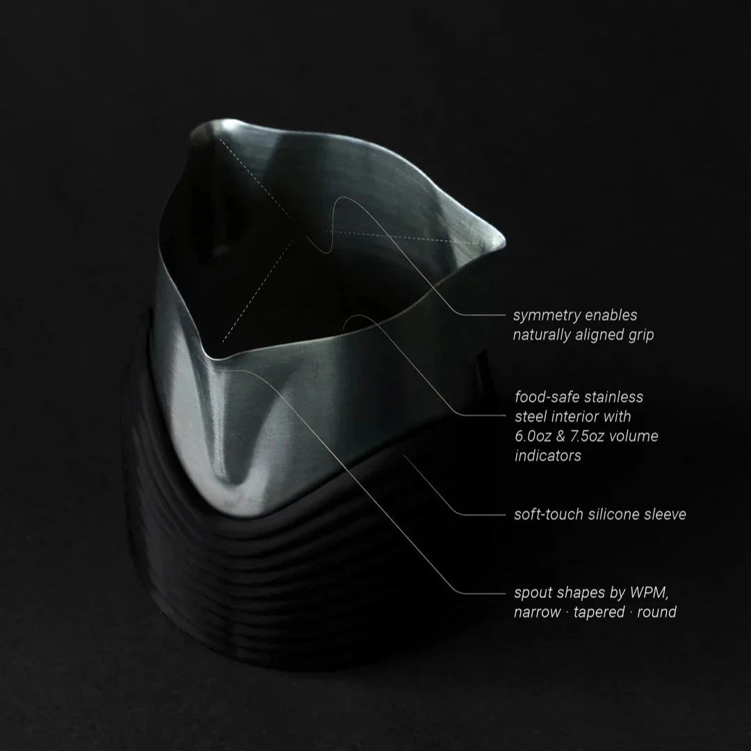 By latte artists for latte artists, KIMERA stems from genuine concerns within the coffee community: challenges from prevalent handle alignment issues and the discomfort that baristas occasionally face with handleless, single-spout pitchers.