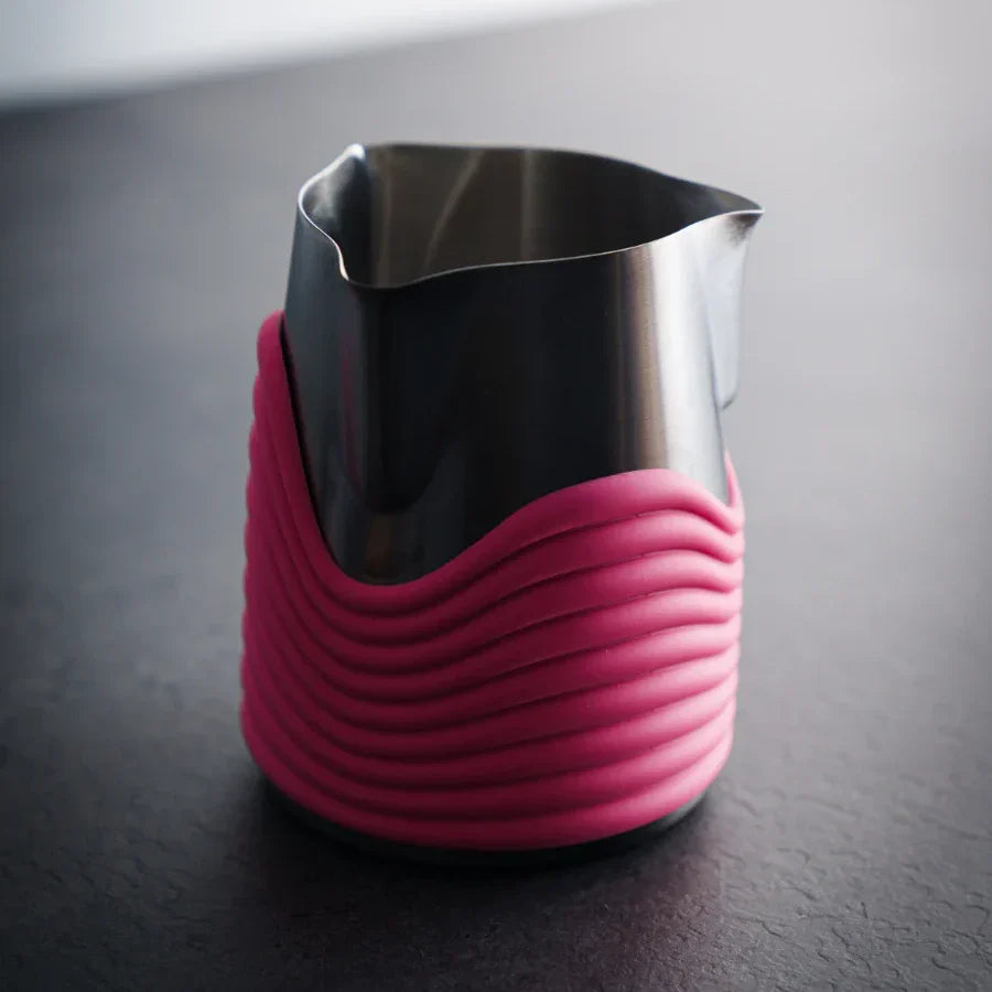 In addition to the aforementioned benefits, the KIMERA pitcher is designed with careful consideration for the diameter of the rim. This ergonomic feature is crucial for reducing strain on the abductor muscles of the hand and wrist. By fitting ergonomically in the hand, the pitcher further enhances comfort during prolonged use, allowing baristas to maintain a natural and relaxed grip without excessive strain.