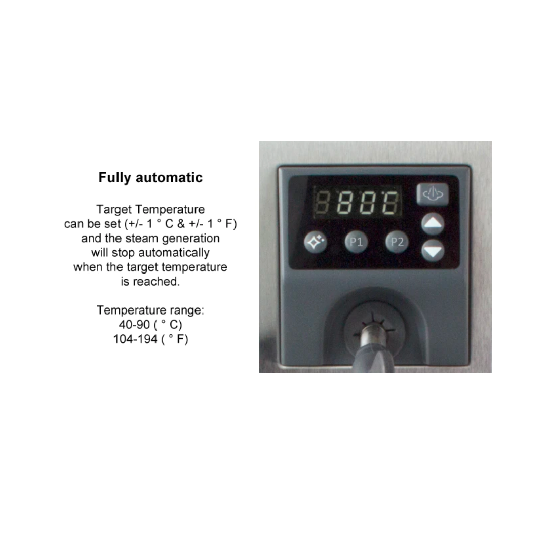 - Fully automatic: Program stops automatically once the target temperature is reached. Nozzle design eliminates the need for manual control of the milk pitcher.