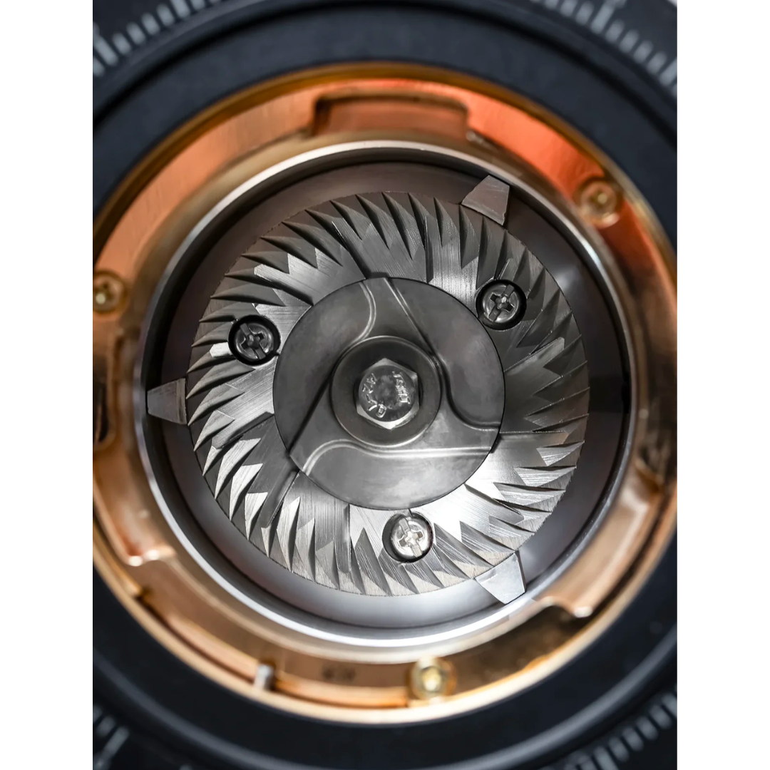 The step-less adjustment mechanism allows for extremely fine adjustments to match your brewing method and bean characteristics.
